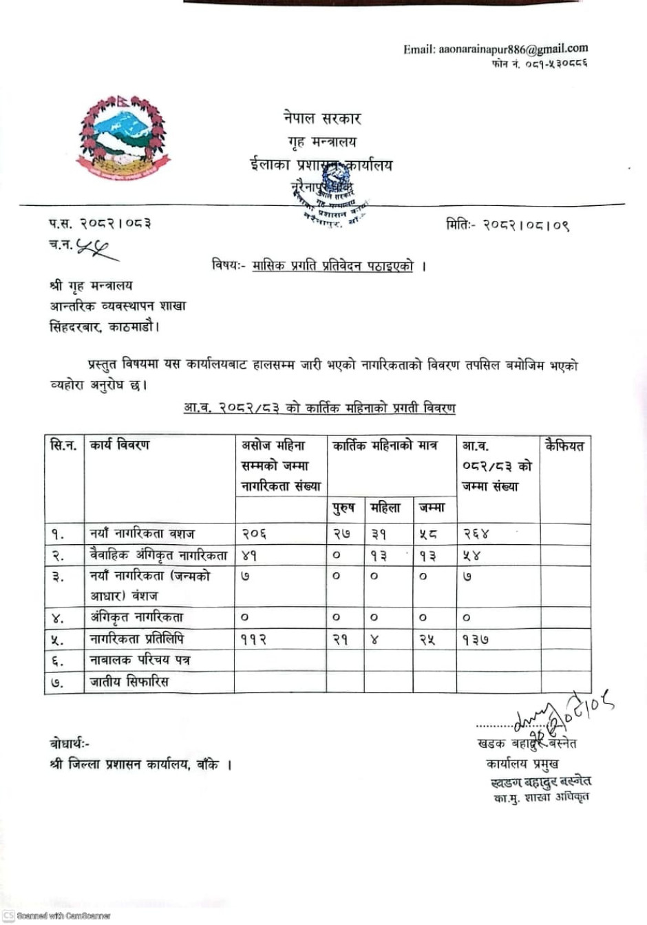 आ व २०८२्।८३ कार्तिक महिनाको मासिक प्रगति