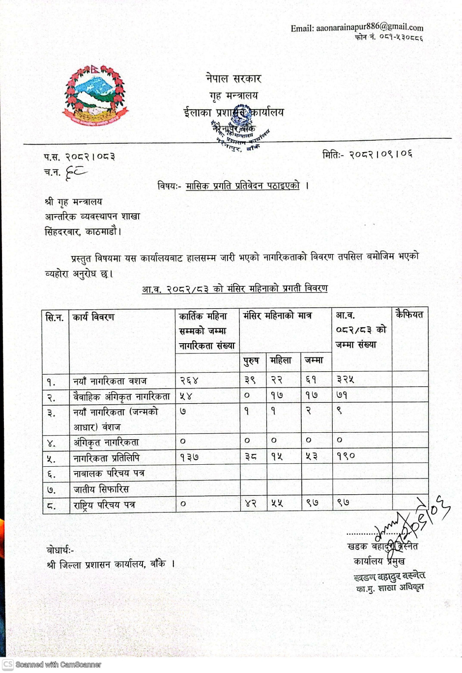 आ व २०८२्।८३ कार्तिक महिनाको मासिक प्रगति