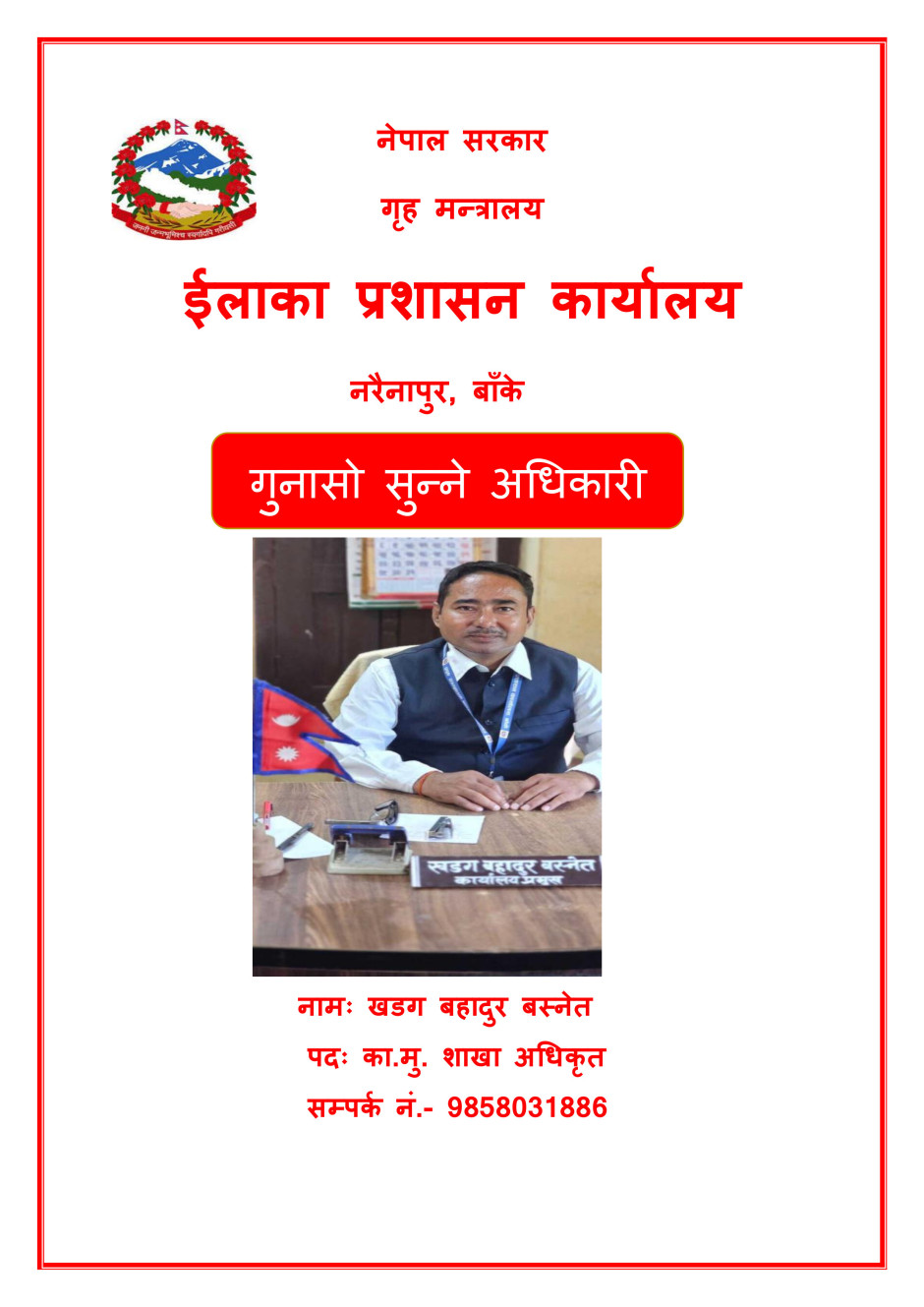 © सर्वाधिकार सुरक्षित ईलाका प्रशासन कार्यालय, नरैनापुर, बाँके